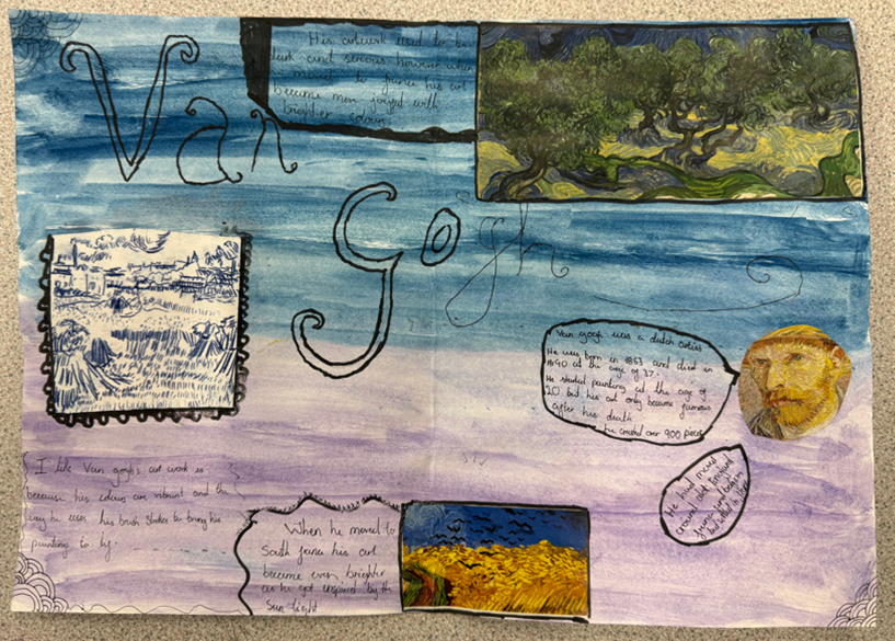 This half term, for their second project in Art, Year 7 has been exploring Vincent Van Gogh while experimenting with mono prints and water colours. Enjoy this gallery!